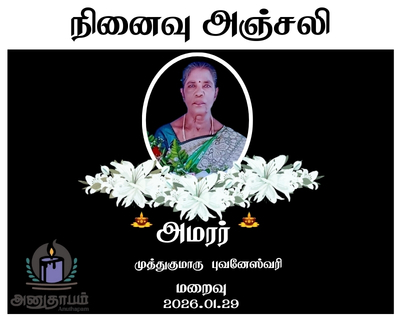 உங்கள் இரங்கலை தெரிவிக்க - “அமரர் முத்துகுமாரு புவனேஸ்வரி”