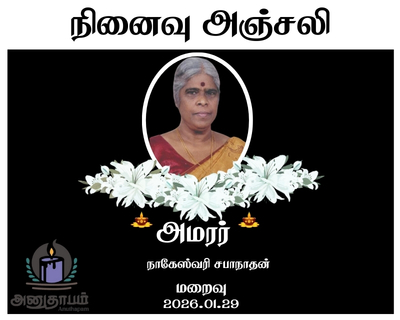 உங்கள் இரங்கலை தெரிவிக்க - “அமரர் நாகேஸ்வரி சபாநாதன்”