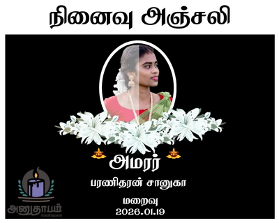 உங்கள் இரங்கலை தெரிவிக்க - “அமரர் பரணிதரன் சானுகா”