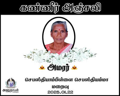 உங்கள் இரங்கலை தெரிவிக்க - “அமரர் செபஸ்தியாம்பிள்ளை செபஸ்தியம்மா”