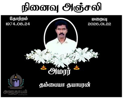உங்கள் இரங்கலை தெரிவிக்க - “அமரர் தம்பையா தயாபரன்”